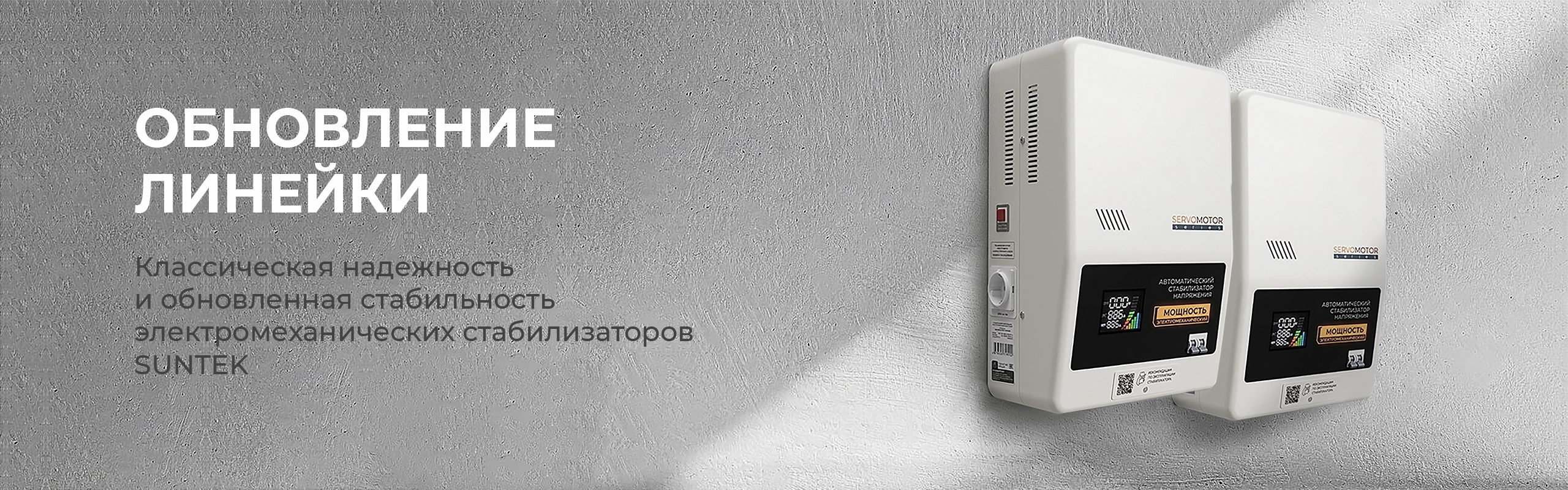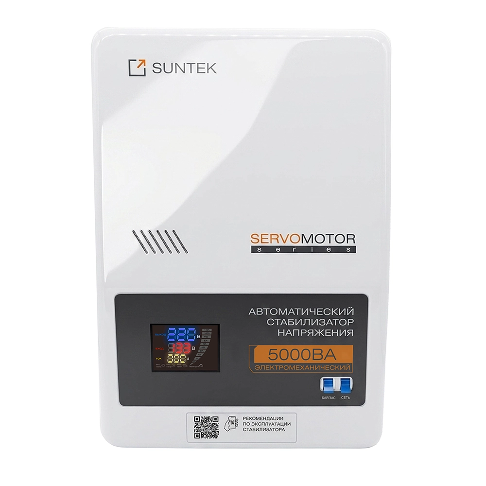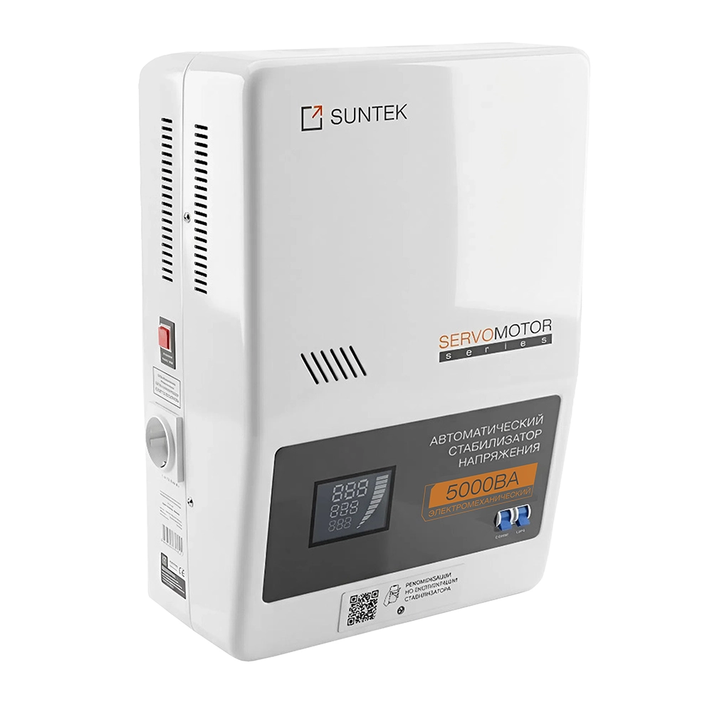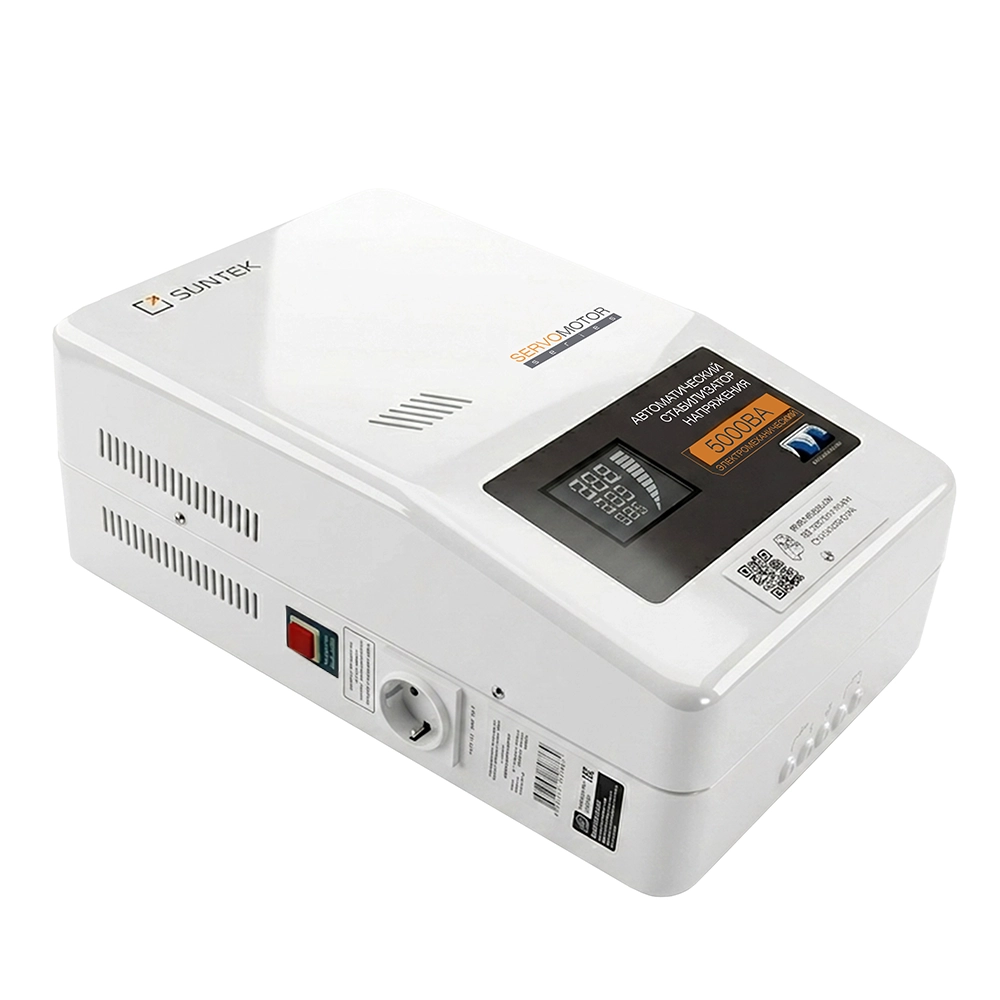 Электромеханический стабилизатор SUNTEK мощностью 5000 ВА с возможностью подключения через розетку. Удобен для бытового использования. Стабилизатор работает в широком диапазоне входного напряжения (120-285 В) и обеспечивает высокую точность стабилизации (отклонение напряжения на выходе не превышает 3% от номинального значения). Настройка напряжения выполняется плавно, тем самым практически полностью исключается заметное глазу моргание света.