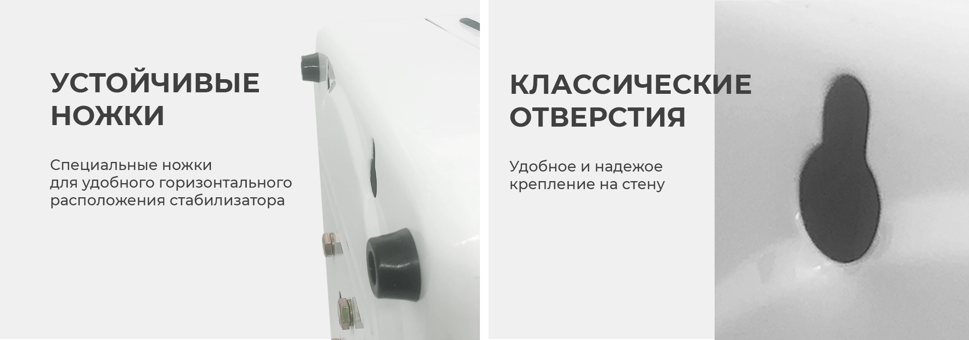 Стабилизатор выполнен в металлическом универсальном корпусе и может размещаться как горизонтально, так и вертикально.